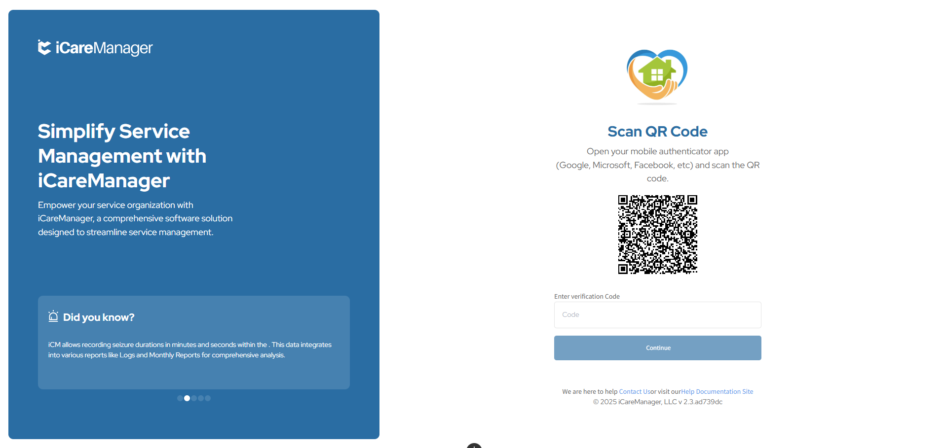 - Entering the correct code will now finalize the Staff’s login to iCM and the iCM Dashboard will automatically display