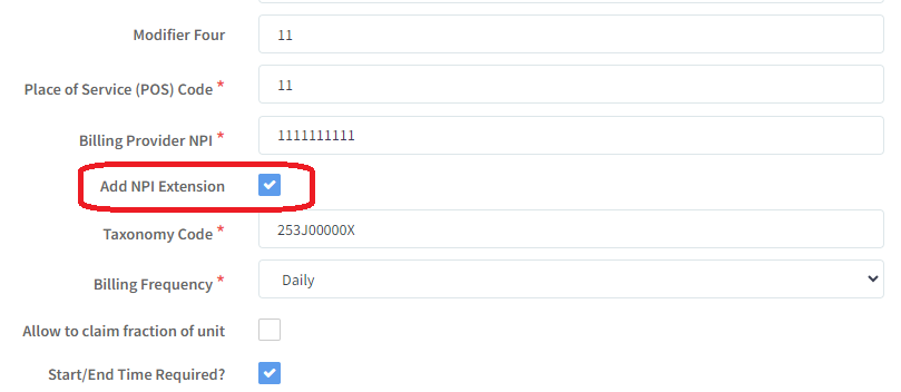 Some states may require an additional configuration for 837P and/or 837I billing known an an NPI extension. This is a three digit extension to the customers current National Provider Identifier (NPI). This feature will be enabled as required. If you have a need for this feature, please reach out to the iCM Helpdesk for more information.