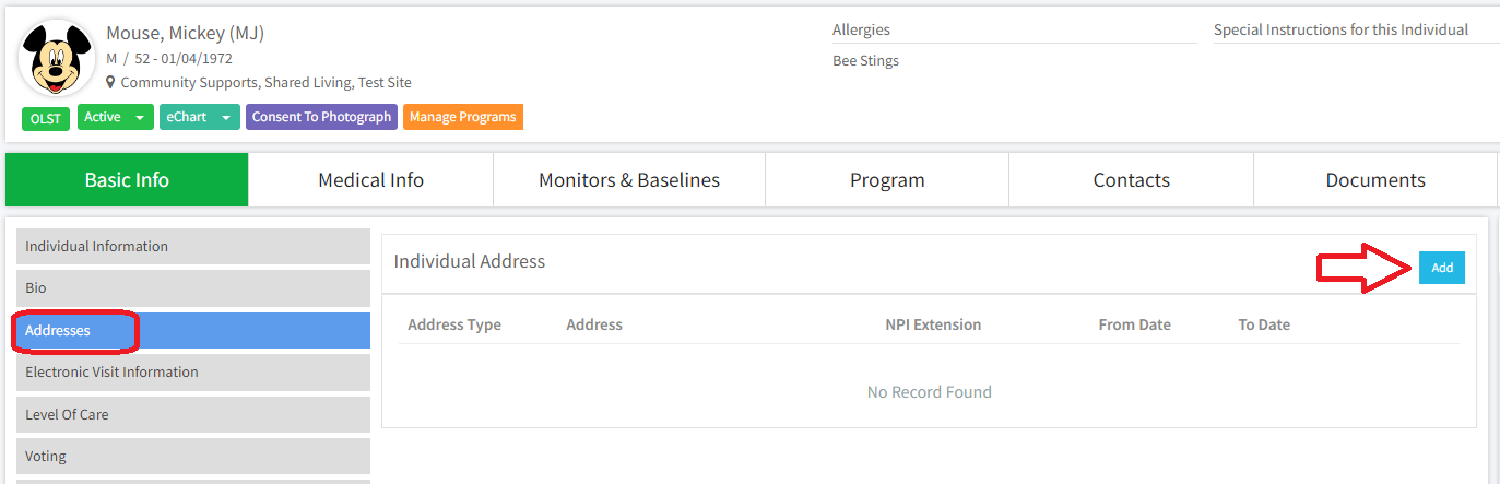 - In the Individual Profile->Addresses, Add or Edit the current address.