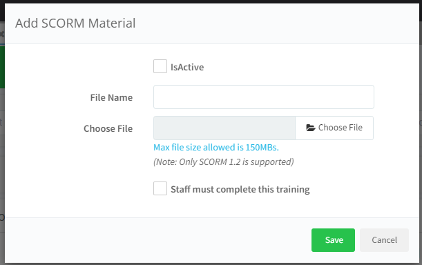 - To set this up you must obtain the SCORM file from your LMS. We do not supply SCORM files.